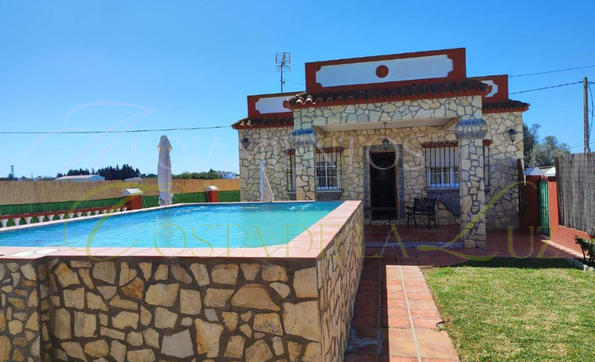 En cuanto a la localización del inmueble, permite el acceso directo a la carretera hacia la entrada de Conil de la Frontera (8 minutos en coche) y se encuentra a 3 minutos en coche de zonas de calas. El chalet se encuentra en una zona muy tranquila y segura, cerca de un bar y asador de pollos. Además, también está situado al lado de una tienda donde podrá encontrar prácticamente cualquier cosa que necesite durante su estancia.